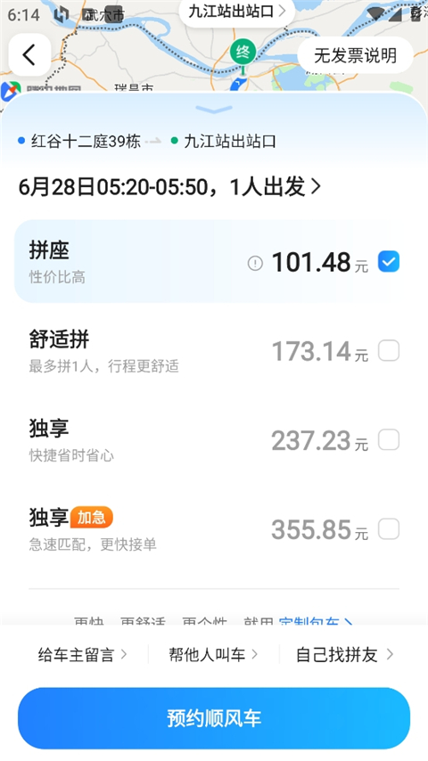 3、选择出行方式,价格不等。