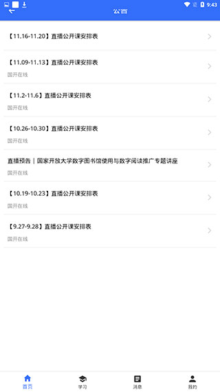 2、点击【直播公开课安排表】之后,我们还能看到非常多的直播课安排内容,用户可以根据此内容合理安排自己的学习时间。