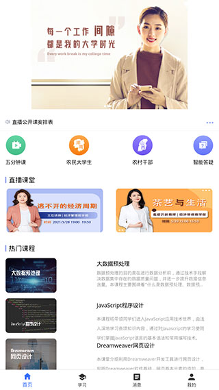 除了以上几点之外,国家开放大学app官方版还汇聚了众多自建学习资源、338所知名高校的课程资源、10个头部平台的特色课程等共计50万门,致力于满足社会大众多元化、个性化学习需求,以数字技术赋能终身教育。最重要的一点是,这些课程均面向社会进行免费开放,无论你是何种身份和职业,也无论你的年纪有多大,只要你有一颗热爱学习的心,你都能够在这里进行自主的学习,有需要的朋友可以前来下载体验一下!