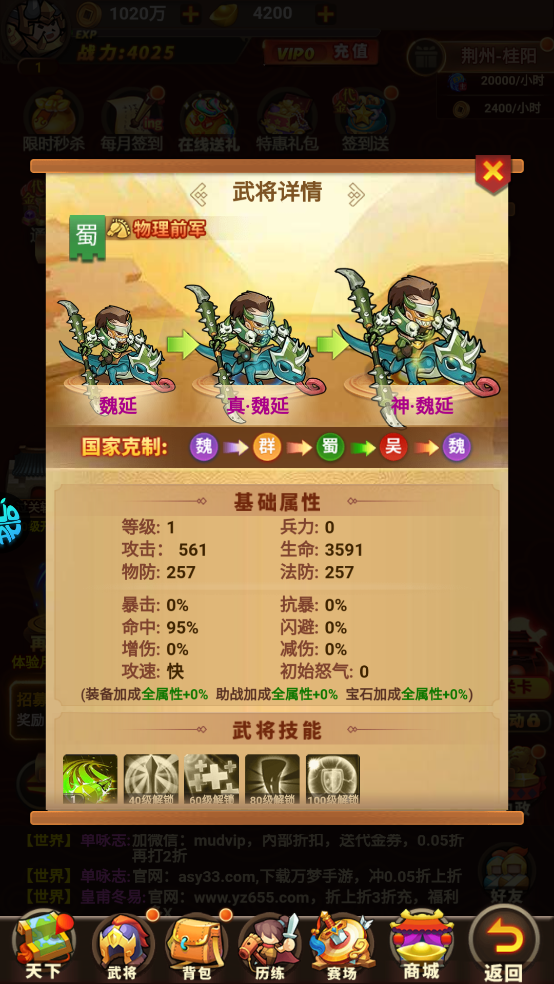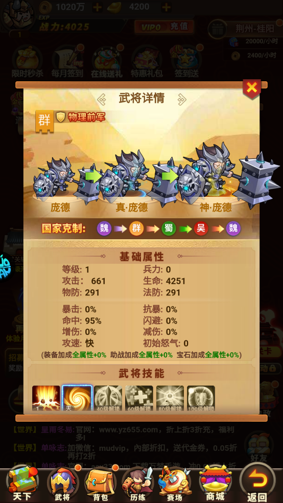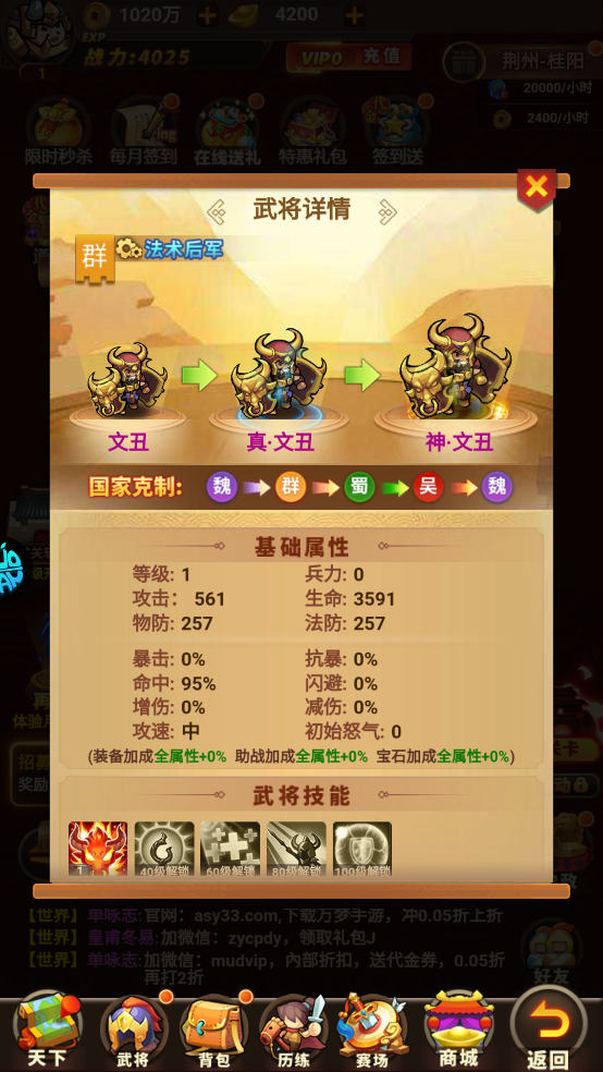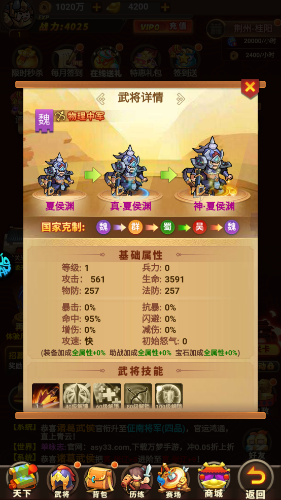 10、【武将来袭”(系统默认开放)可以获取更多额外经验,从而提升人物实力。另外,在挑战副本的过程中还可以进行通关