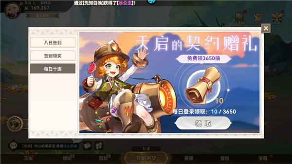 6、当然阵容需要角色,通过活动以及签到可以获得大量招募卷进行招募角色。