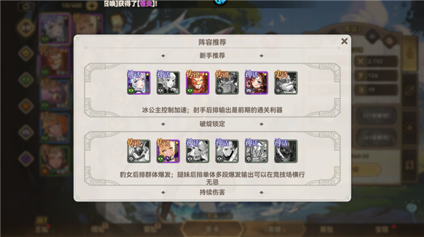 5、随着玩家的等级提升,需要搭配更多阵容,可以查看阵容推荐进行搭配。