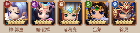 神·郭嘉、魔·貂蝉、诸葛亮、吕蒙、徐晃