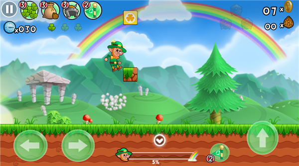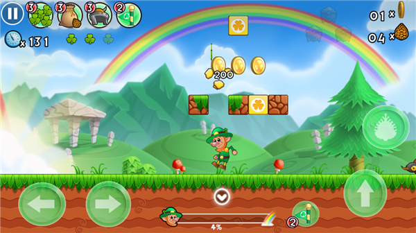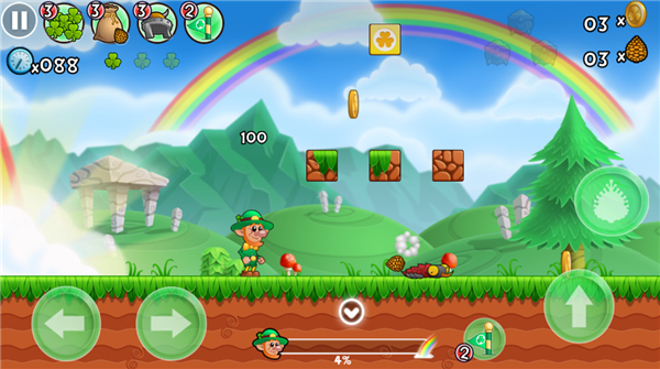 游戏还是大家熟悉的闯关机制。顶砖头、吃金币、打怪物等玩法,一个都不会落下。玩家需要控制人物在规定时间内到达终点,每关有3点生命值。