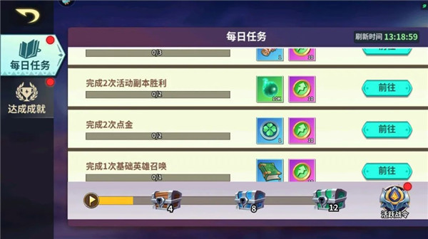 3、找到过每日任务、成就任务菜单,完成任务后领取钻石和道具。