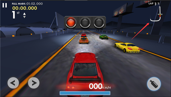 5、点击屏幕,你的赛车就会加速行始,增加游戏的刺激性