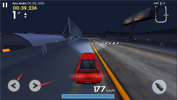 6、午夜狂飙3设定在行始过一段路后,会提高你的车速,慢慢挑战你的反应力吧