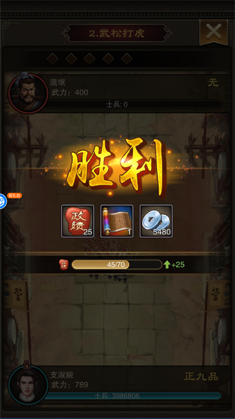 3、击败敌人即可获得政绩;