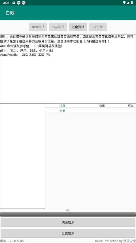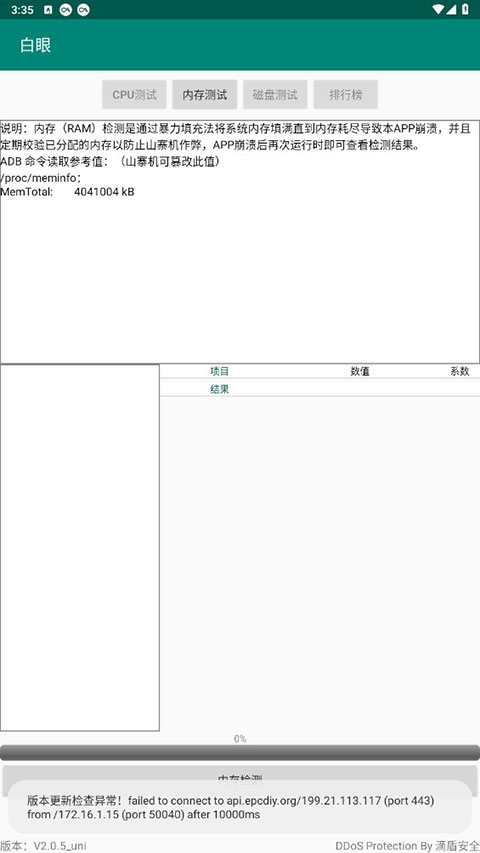 注意:请尽可能关闭所有后台驻留APP,特别是微信扣扣等,以获得准确的测试结果!内存(RAM)检测是通过暴力填充法将系统内存填满直到