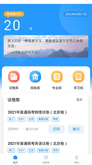 1、进入软件【首页】之后,我们就能看到一些4个常用的功能入口:试卷库、院校库、专业库、学习机。