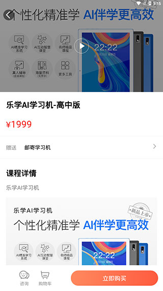 5、【学习机】:这里可以为用户提供高中学习机的购买途径,下方还有专门的购买咨询入口,帮你解答相关疑问。