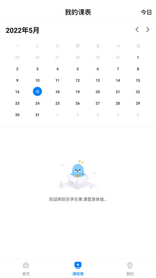 6、切换到【课程表】页面之后,我们还能根据当前日期查看我的课表,右上角还可以切换月份显示。