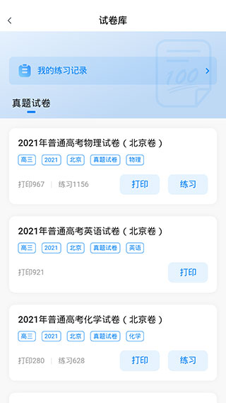 2、【试卷库】:这里为我们展示的都是历年以来的高考真题,上方还可以查看我的练习记录。