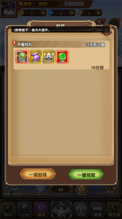 也就是常提到的主线推关,随着关卡不断推进,解锁更高更好的挂机奖励。