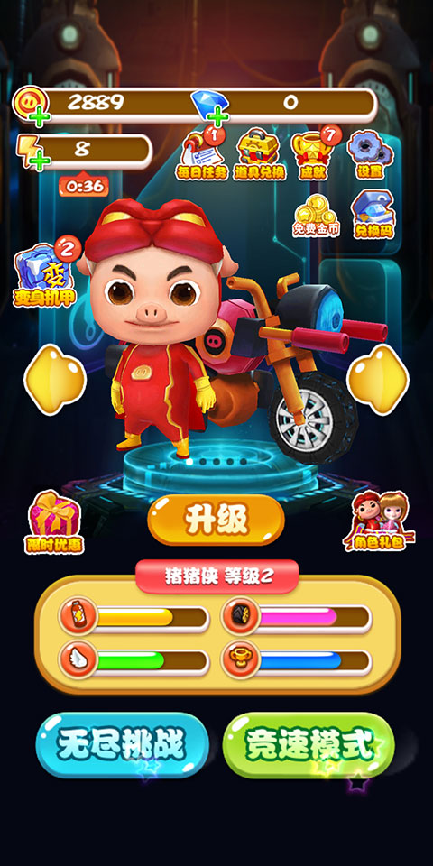 并且猪猪侠之摩托英雄中还有着丰富多样的关卡和挑战模式。你需要操作摩托车巧妙地避开各种障碍物和危险,同时还要注意对手的攻击。你可以使用独特的技能和武器来应对敌人的威胁,并收集硬币来购买新的摩托车、装备和道具,提升自己的能力和战斗力。总而言之,猪猪侠之摩托英雄能给玩家带来刺激的摩托车驾驶体验和成为超级英雄的乐趣。无论你是喜欢摩托车还是喜欢猪猪侠,都会在这款游戏中找到乐趣,感兴趣的小伙伴快来下载试试吧!