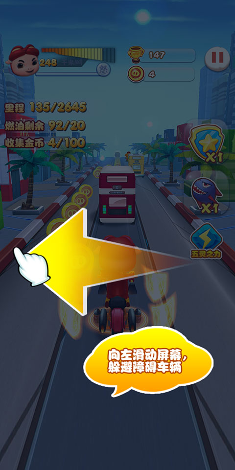 3、左右滑动可以切换跑道,从而躲避障碍车辆。