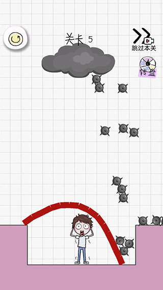 6、第五关会有很多东西从上面掉落下来,我们画的毛线需要将整个人物完全罩住。