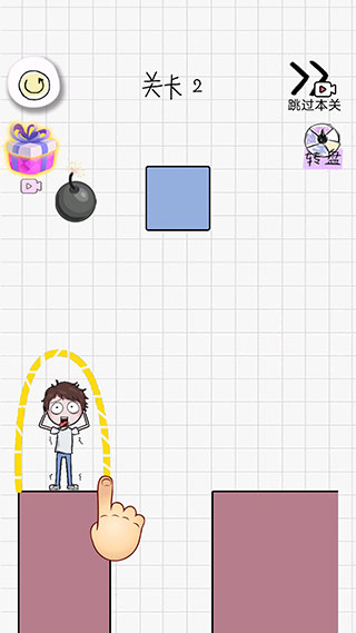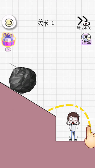 2、从第一关开始,这关很简单,从人物的头上画一条毛线即可。