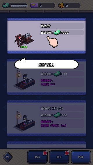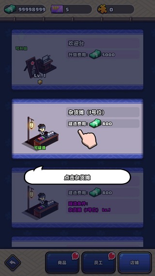 同样的方式,点击管理,选择杂货铺,点击建造即可!