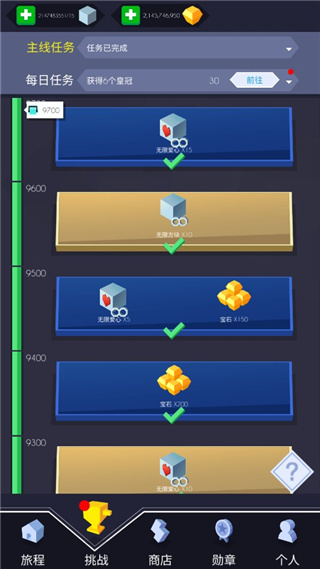 7、选择挑战,这里可以查看你的主线任务和每日任务,在完成这些任务后还能够获得额外的奖励;