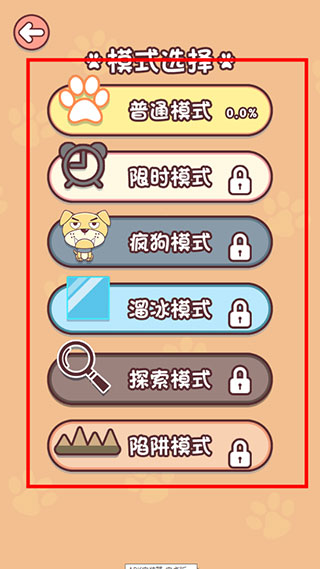费脑子、费眼神、拼时间的益智迷宫闯关达人游戏大家玩过吗,这是一款趣味迷宫游戏。在游戏中,玩家将展开趣味的走迷宫的体验,要小心部分迷宫是有陷阱的,你需要通过躲避疯狗拾取小鱼获得胜利,或者是在冰块上一滑到底,也有可能在限定时间内拾取小鱼获得胜利,每个关卡都不一样。游戏拥有六种模式,普通、限时、疯狗、溜冰、黑夜等,为玩家带来不同难度的闯关方式。更有多种皮肤,等你来选择,不同的皮肤可以为你带来不同的体验,也可以让你化身为迷宫中最亮的崽。清新简约的绘画风格,对于关卡里面的色彩渲染也非常的特别的,给予玩家不一样的游戏体验感觉。