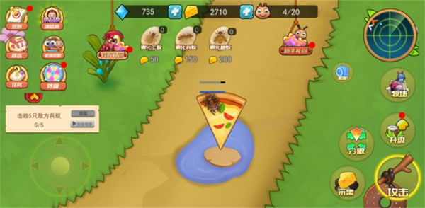 2、操作非常简单,利用屏幕左边进行蚂蚁控制,右边则是攻击和采集等操作;