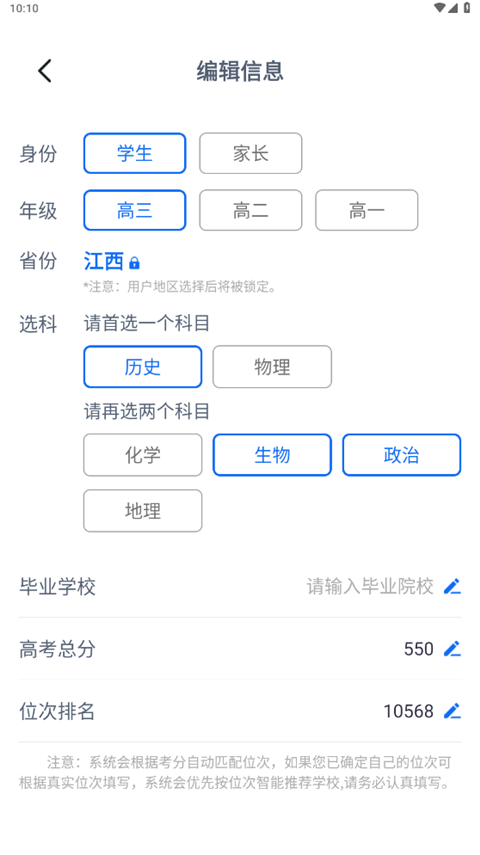 1、使用手机号验证码进入前程志愿App,填写相关信息。
