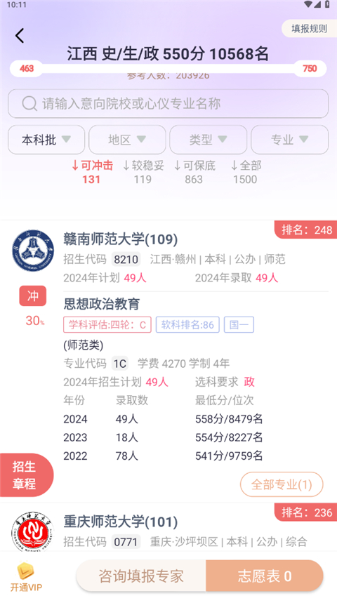 关键数据同步显示,快捷填报学校、专业到我的志愿表,还可一键查看学校和专业信息,了解我喜欢的院校,报考定位更准确!