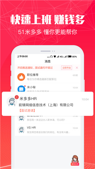 51米多多提供人力资源顾问1对5培训体系,帮助企业解决人事外包难题,助力个人成长。企业HR可通过APP实时沟通联系,轻松实现招聘高效匹配。