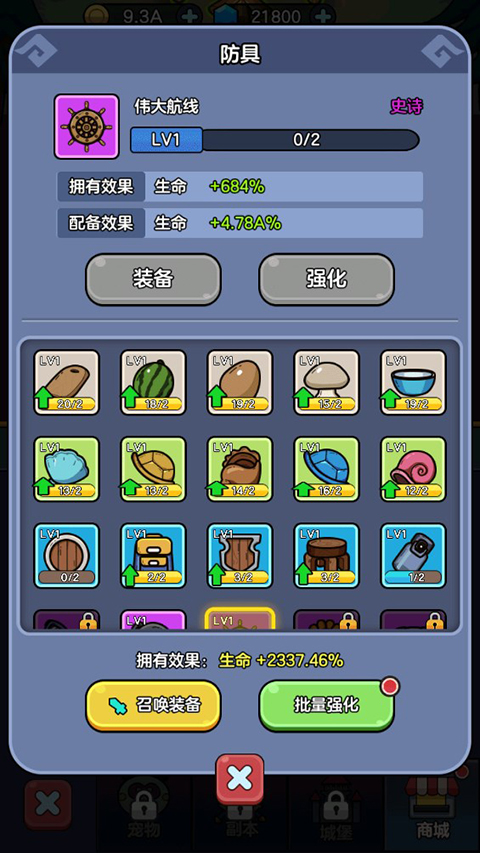 2、防具:角色防御类装备,品质从低到高分为普通、高级、稀有、史诗、传说、神话、超越七种类型,可以增加角色生命值。