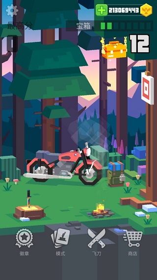 6、一般而言,靶子离的远的时候以握住刀柄为宜,这样拔出后的刀具移动地更慢、整体在空中旋转的角度也会更小;而靶子离得远时则以握住刀身为宜。在完成十次连续民众后就能开启位于树上的宝箱、获得大量金币,所以想要开启更多新的刀具的话,打靶模式就是刷金币的最佳场所
