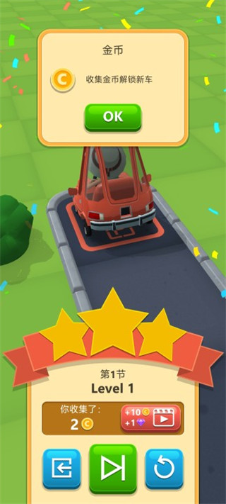 2、成功让车停在车位即可闯关成功;