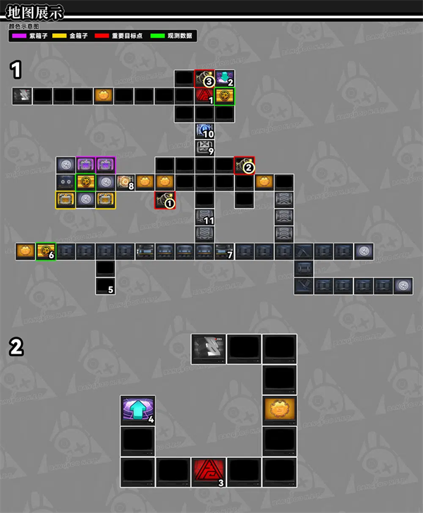 4、完成战斗后将炸弹①/炸弹②/炸弹③运送到11号点位的位置(炸弹③可以通过9号点位来打开10号点位的阀门,玩家在8号点位交付2500齿轮币打开阀门获取里面两个紫色宝箱与两个金色宝箱与丁尼)