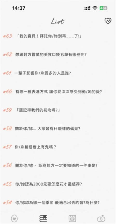 1、Sumone是一款设计软萌的情侣问答日记,它通过一天一个问题的方式,探究、记录爱情轨迹,问题需要双方回答,这能让对象清楚你的真实想法。