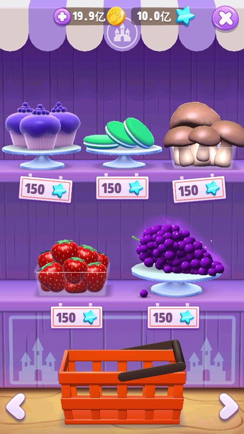 3、点击厨房里的冰箱可以进入到食物购买界面,有多达25中食物可以选择,包括水果、蔬菜、甜品。