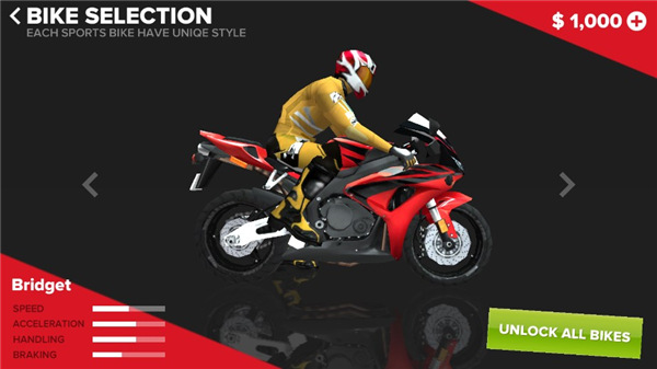 1、画面十分的写实清晰,音乐也十分的激昂2、令人身临其境的3D的场景及摩托车的模型