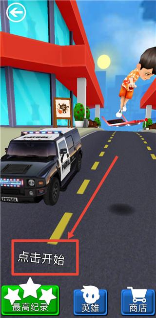 2、我们选择第一个天天跑酷传奇进入,下面是英雄角色和商店;