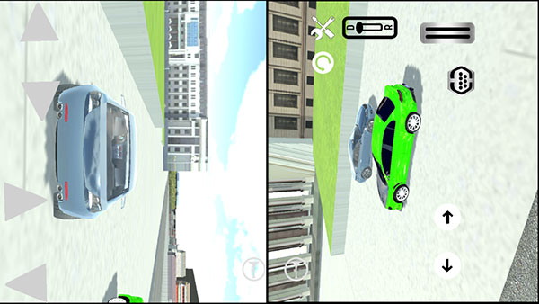 4、在【车祸模拟】中,我们驾驶着汽车可以撞向场景中的任何障碍,感受车祸瞬间的模拟体验,此处是切换了按键控制后的画面。