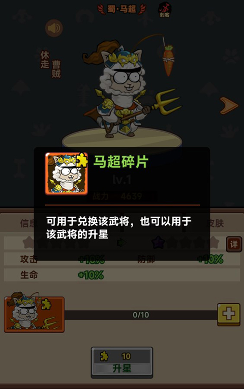 2、玩家在拥有足够的碎片时,可以对武将进行升星,提高武将星级,大幅增加战力。