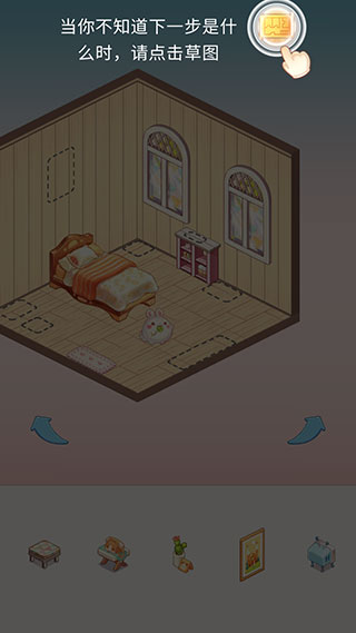 1、该游戏的主要玩法就是将家具移动到正确的位置,以装扮出漂亮的房间。