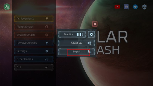 1、首先进入星球爆炸模拟器游戏,首次打开默认是英文语言,点击Settings