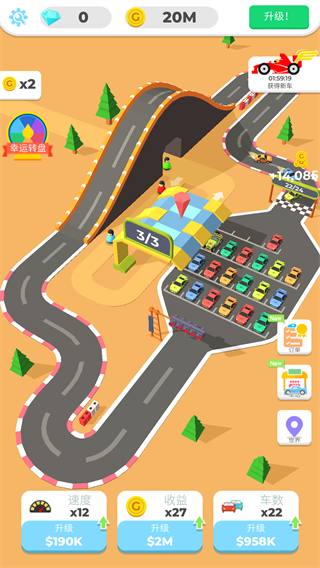 1、有趣好玩的赛车合成挑战,从一级赛车开始合并,不断解锁更高等级的车辆。