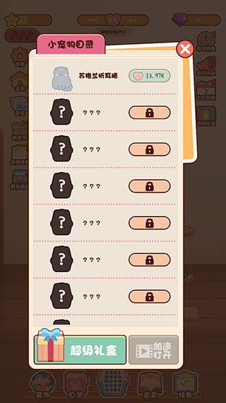 4、已解锁的宠物将出现在目录里,使用爱心购买更高级猫咪,可以缩短合成步骤。