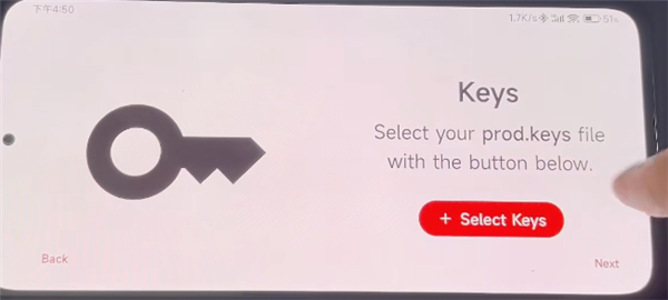 2、接下来我们需要一个Keys文件,点击Select Keys选项进入下一步;