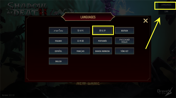 2、进入游戏可以点击右上角设置语言,选择简化字即可设置成中文。