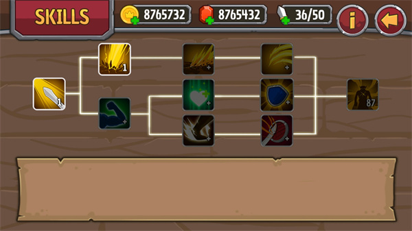 4、前期并没有解锁所有的技能,都需要玩家一一来解锁,击杀所有敌人就可以通关;