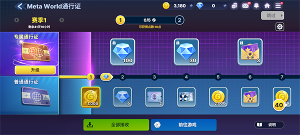 当获取Meta World通行证后,只要登录游戏也可以获得丰厚奖励