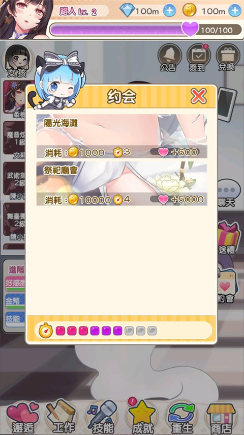 5、提升技能,打工赚钱,给小姐姐买礼物,光速提升好感度。