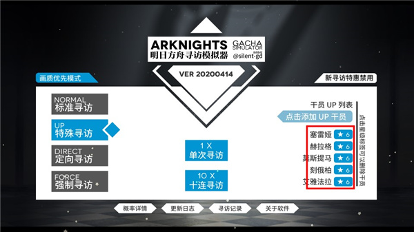 2、进入模拟器之后,我们在屏幕的左方可以看到四种寻访模式;