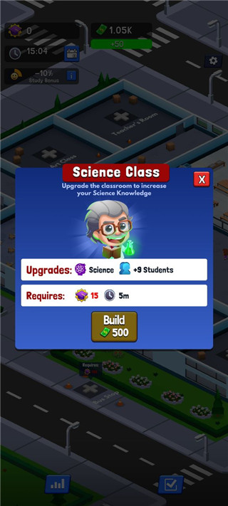 空闲高中大亨官方版是一款非常有趣的校园模拟手游,游戏采用卡通可爱的画风,所有人物都是Q版卡通的样子,给玩家带来独具特色的游戏体验。游戏中玩家是一间学校的校长,你需要欢迎学生入学,在这里招募老师,建设各种校园设施。通过不同的方式,不断提升学生们的成绩,提高学校的知名度,学校知名度越高,学生就会越多哦。